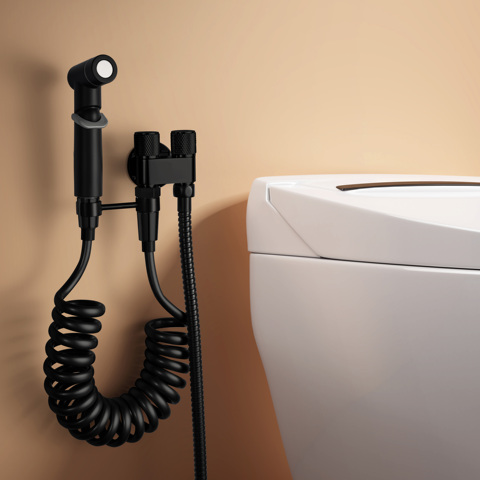 GEE-N Black Brass 1 em 2 Válvula de ângulo de limpeza Double Handle Shunt Faucet Diverter WC Bidé Pulverizador Shattaf